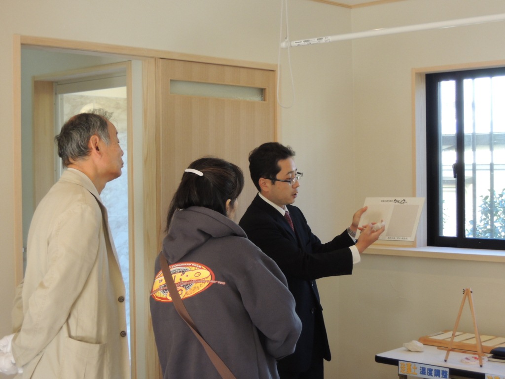 投稿日: 2012年11月14日珪藻土も承っております 【木と漆喰の家】を定番としております高棟建設ですが 壁の仕上げを《珪藻土》でも承っております そんな珪藻土をより深く知って頂きために珪藻土のセミナー(?)を開催しました メーカーの担当者に来ていただき珪藻土に水をかけたり、芳香剤の中に入れたりしながら珪藻土の特徴を説明、実際に珪藻土で施工された空間で聞く話には説得力があるのでは・・・