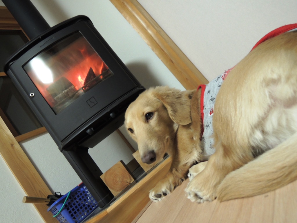 投稿日: 2014年2月8日こんな寒い日はこれに限る・・・ 今日(2月8日)は朝、目覚めたら雪景色 年に一回(?)は有ります降雪です 外気温はマイナス1度 こんな寒い日はこれが最高です 薪ストーブの前の一等地は我が家のワンちゃんが陣取っています 快適な場所って動物の方がより分かっているのですね!