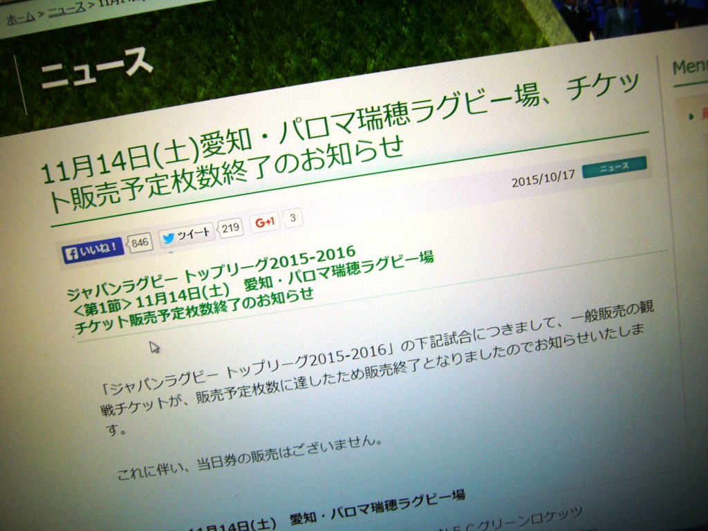 日本代表の中でも一番人気はやはり五郎丸選手でしょう。その五郎丸選手が所属する《ヤマハ発動機》開幕戦のチケットが《完売》となっています。