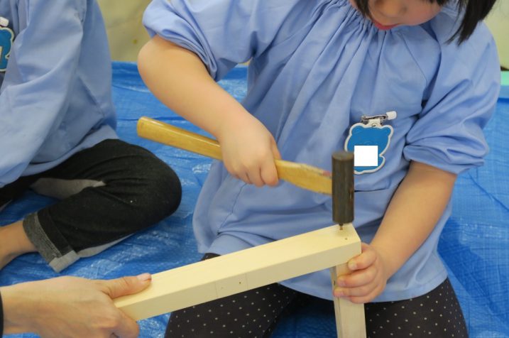 指をトンカチで少し叩いてしまったお友達もいましたが、みんな上手にトンカチを使って全員完成までたどり着きました。