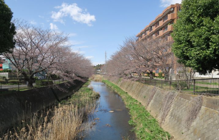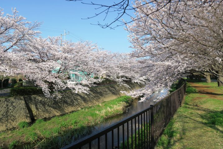 高棟建設工業の前に流れる阿久和川、その河川敷を挟むように立ち並んでいる桜が満開を迎えました。