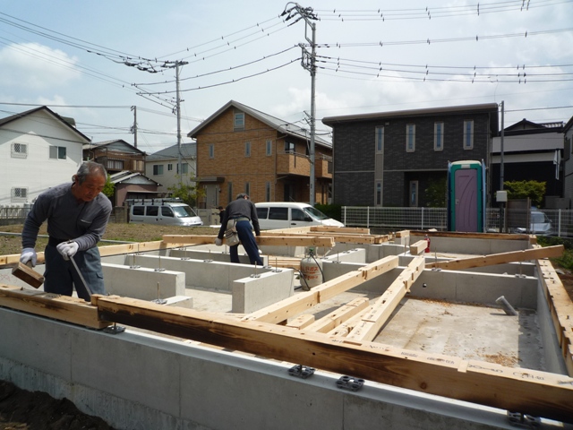 これは昨日の「土台引き(土台敷きとも言います)」の様子です。