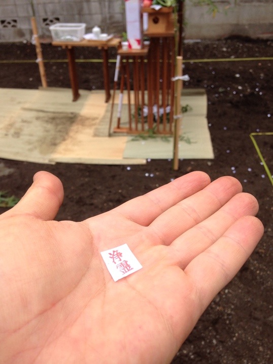 今日の神主さんはお施主様の知り合いの方なのですが、紙にこんな文字が。