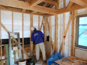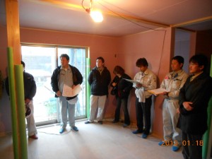 匠の会スキルアップ研修今日は、匠の会のスキルアップ研修を斜め張りの家で行いました。 みなさん、さすがに、鋭いところを指摘してくれるので勉強になりますね。 本日は、ありがとうございました。 大木 和室天井和室の天井板(杉の羽重ね板)を大工さんが載せている模様です。 このように、桟を打ってから上に載せていき、上から金物で留めます。一番最後の張り終わりが大変なんですね。 大木 ホール吹き抜けベランダ下地jio構造検査先日、JIOの構造検査をうけました。 けっこう細かいところを見るんですよね~!金物のビスの本数まで、しっかりチェックしてます。 大木 斜め貼り2階の屋根の下地の木酢板を水平構面を強くするために斜めに貼っています。 巨大カメの甲羅みたいです。ちなみにうちのカメもでかくなりました。 大木 |
