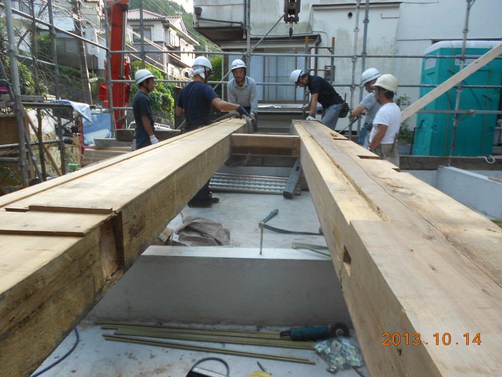 大工さんが苦労して造った、桟が打ち付けられかっこいいですよね。 もうすぐ足場も外れてお披露目になります。楽しみです。 大木 杉の外壁板張り外壁杉板の加工箱階段の原型から木工事継続中牛梁(ぎゅうばり)棟上げ山形からきた材料で造りあげる移築プロジェクト、報告が遅くなりましたが 無事、山形の大工さん達と棟上げまで終わりました。 今は1層目の屋根板までは貼り終わり筋交いなどを入れている状況です。 又、報告致します。 大木 土台敷き |