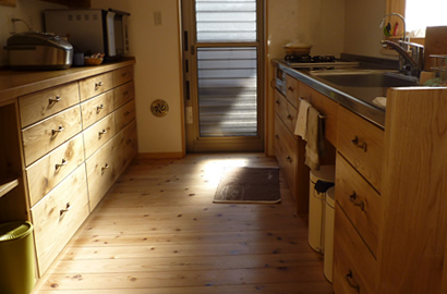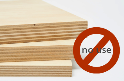 合板といわれる木の面を接着剤で何層にも重ねあわせた製品は使いません。