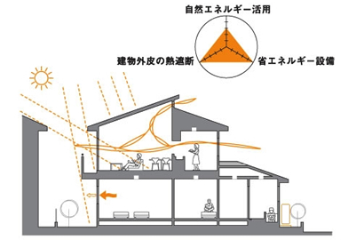 エアコンなどに頼らなくとも《夏涼しく》《冬暖かい》室内空間を実現するため、《パッシブデザイン》を重視します。